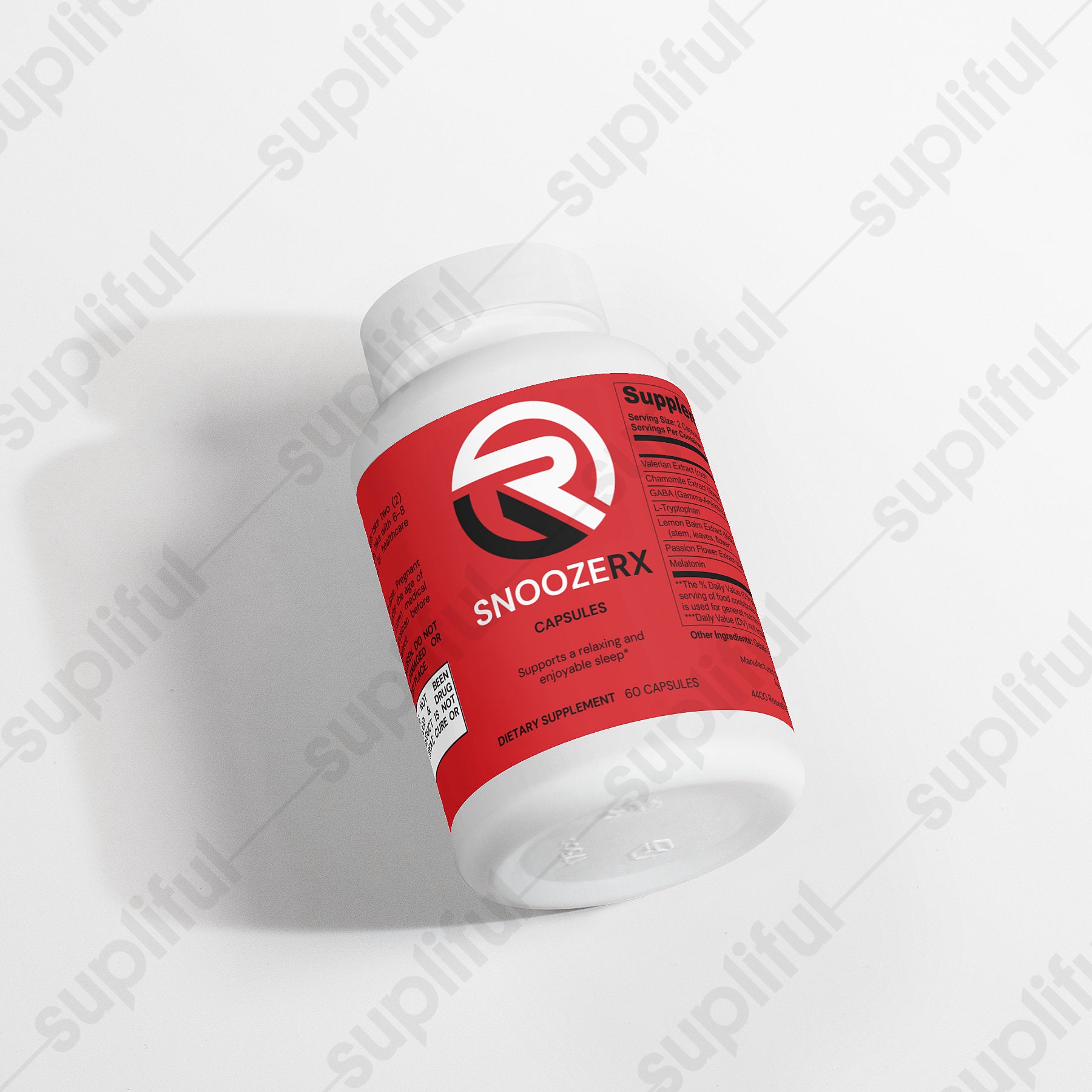 Ingredients: Valerian Extract (root); Chamomile Extract (flower); GABA (Gamma-Aminobutyric Acid); L-Tryptophan; Lemon Balm Extract (Melissa officinalis) (stem, leaves, flower); Passion Flower Extract (stem, leaves, flower); Melatonin
